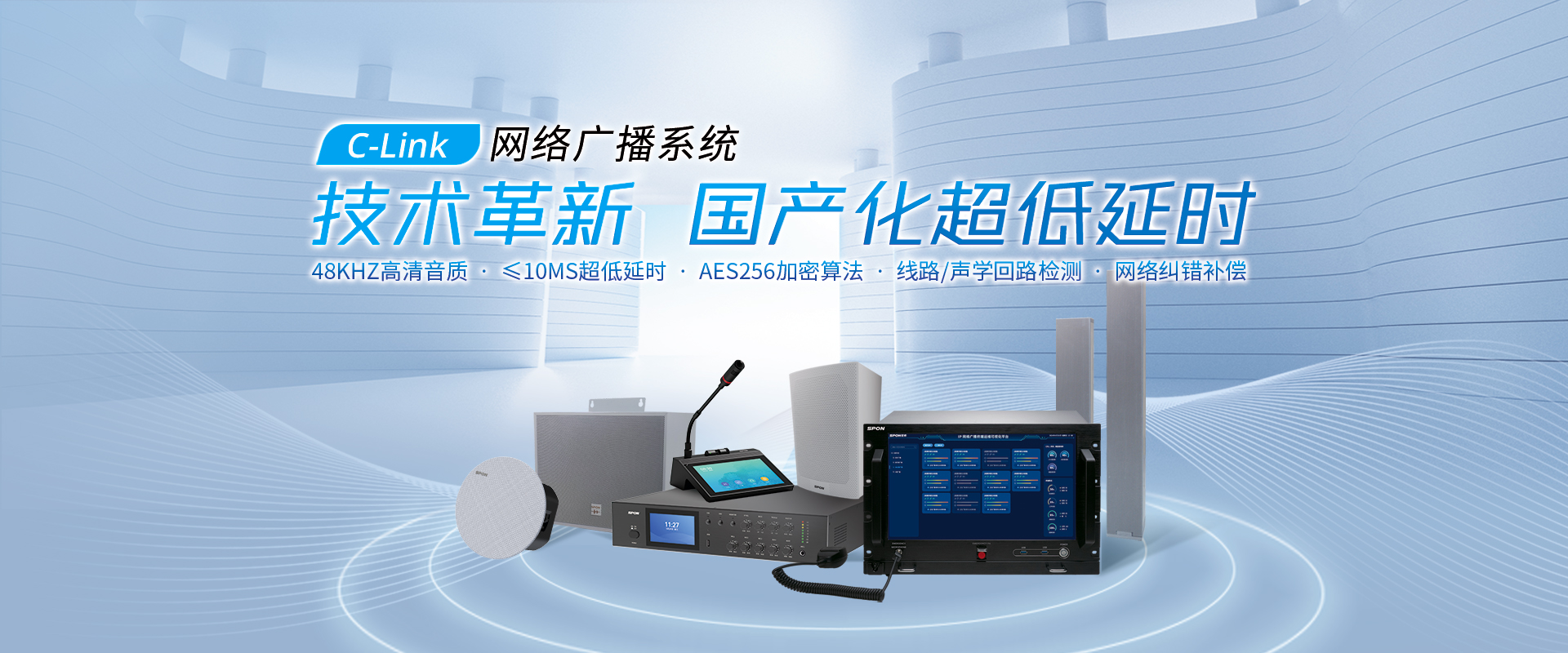 核心競(jìng)爭(zhēng)力產(chǎn)品:IP公共廣播系統(tǒng)   IP會(huì)議擴(kuò)聲系統(tǒng)   IP內(nèi)部通信對(duì)講系統(tǒng)   IP高清拾音系統(tǒng)